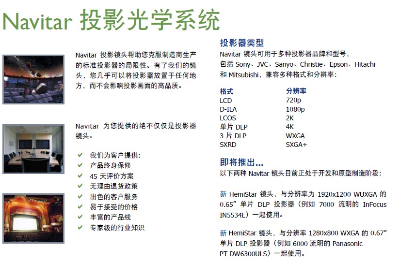 Navitar 投影光學(xué)系統(tǒng)