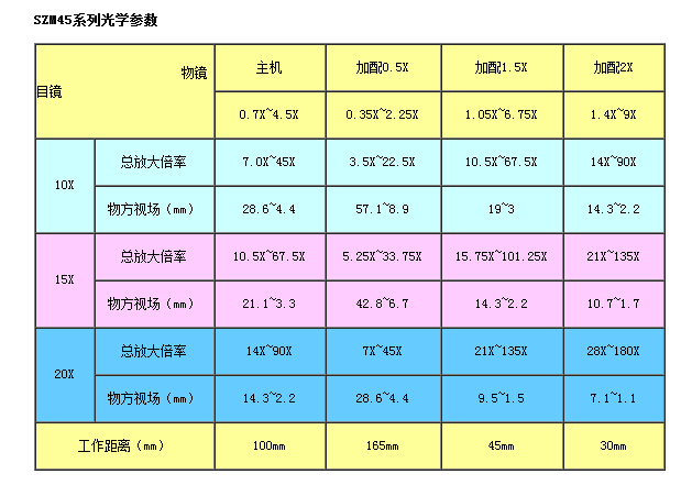 ★ 標(biāo)準(zhǔn)放大倍率7X~45X連續(xù)變倍,可擴(kuò)展至3.5X~180X